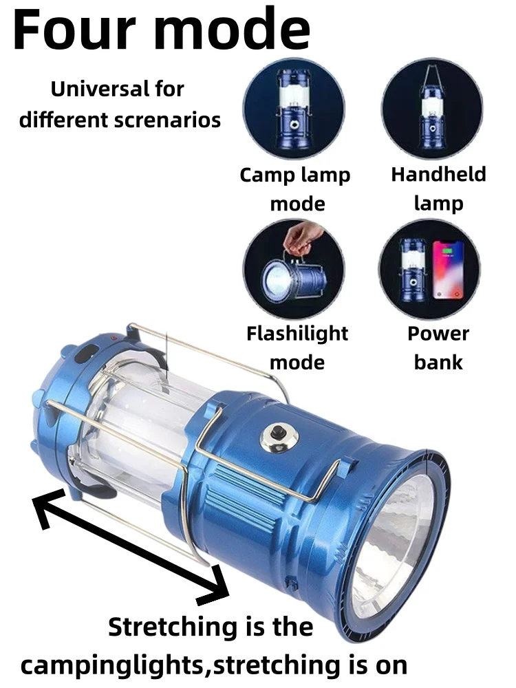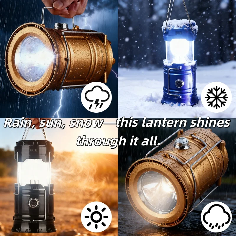 Brighten your adventures with this Solar LED Camping Lantern! Portable, waterproof, and multifunctional, it works as a tent light, handheld flashlight, and emergency lamp. Rechargeable via solar or USB, it’s perfect for camping, hiking, backpacking, and emergencies. Lightweight, durable, and easy to carry—your all-in-one outdoor lighting solution!